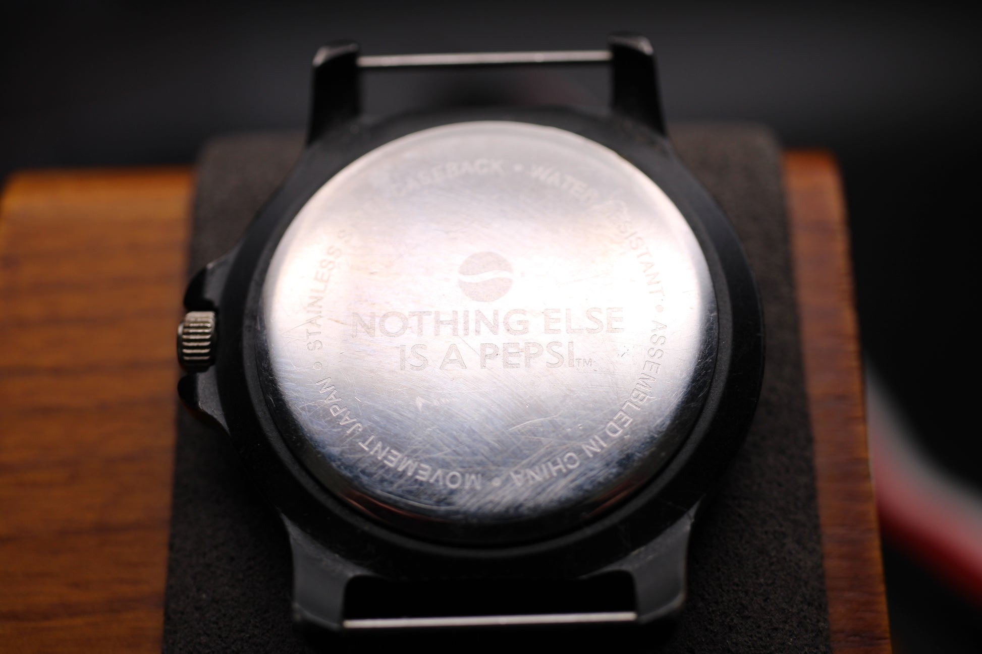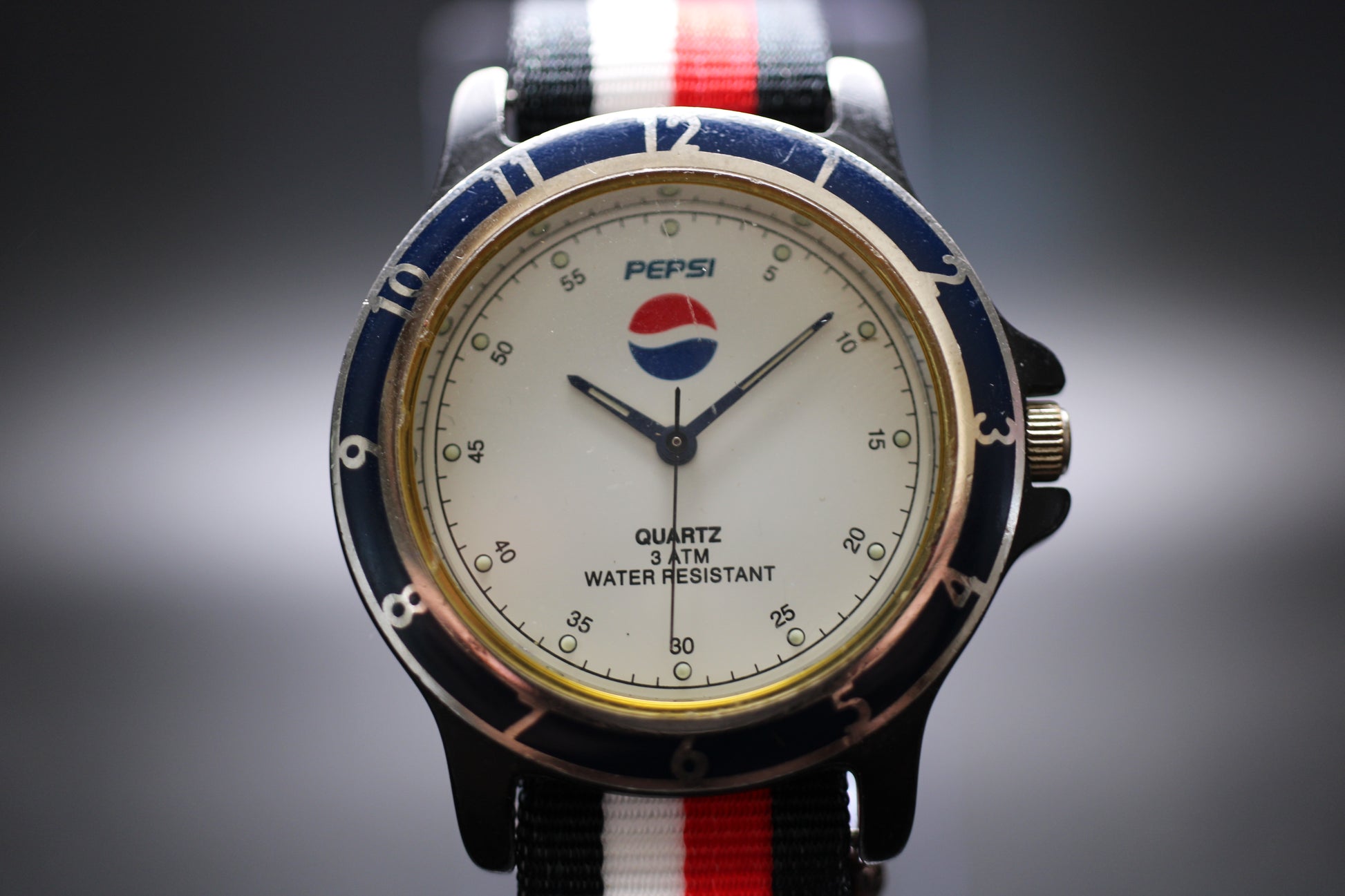 - Despite being a simple quartz watch, it was water-resistant to 3 ATM, meaning Pepsi’s marketing team promoted it as ready for poolside or beach use during the brand’s summer campaigns.